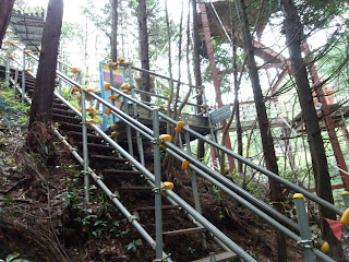 次のスタンプポイントは、摩耶ケーブルの駅。2ヶ月連続で、掬星台からロープウェイ・ケーブルを使って楽に下山する訳にはいかない。ロープウェイ乗り場を無視して、青谷道から下山する。厳しい下り坂で、膝や足首にかなり負担が掛かりそうだ。
