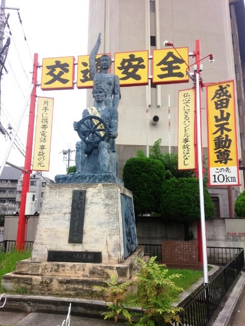 交通安全で有名な、成田山不動尊がある寝屋川までは、少々離れているのだが、交通量の多い国道1号線だからなのだろう。成田山の交通安全のブロンズ像がある。ハンドルを握るドライバーの後ろで女神様?が見守っている。
