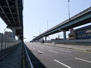 国道43号線の上には阪神高速神戸線が走っている。道路の構造上こうなるのかもしれないが、高速道路の幅に対して、支持橋脚の広さが気になる。阪神大震災では一本脚部分の倒壊が目立ったように記憶しているが、高速道路は、少々無駄があってもいいから頑丈なものであってもらいたい。