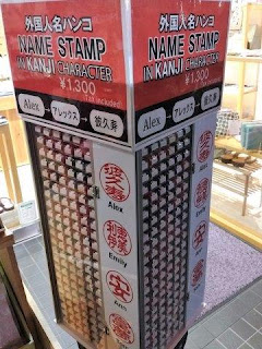 土産物屋さんで、外国人向けの印鑑が売られている。何百もの姓を漢字に置き換えている訳だが、TOMが「富夢」などはいいものの、ALEXは「彼久寿」と読みが違うし、EMILYは「恵美利伊」と、意味なく4文字になっているなど、気になる漢字が多い。