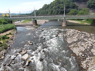 塩川橋を渡る。この橋の向こうから韮崎市となり、峡北地方に入る。相変わらず前方には南アルプスが聳えていて、この先どこを通って信州へと向かうのだろうか。容易な道には思えない。